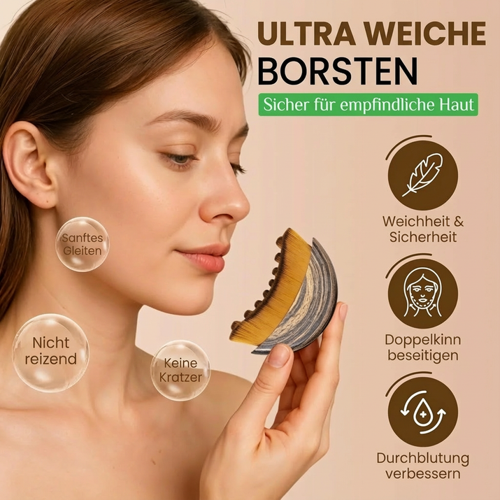 Verleihen Sie Ihrem Gesicht sofort mehr Definition und Frische. Diese Bürste aktiviert sanft das Lymphsystem, leitet Wassereinlagerungen ab und lässt Sie in wenigen Minuten wach und strahlend aussehen – ganz ohne Chemie oder aufwendige Routinen.
